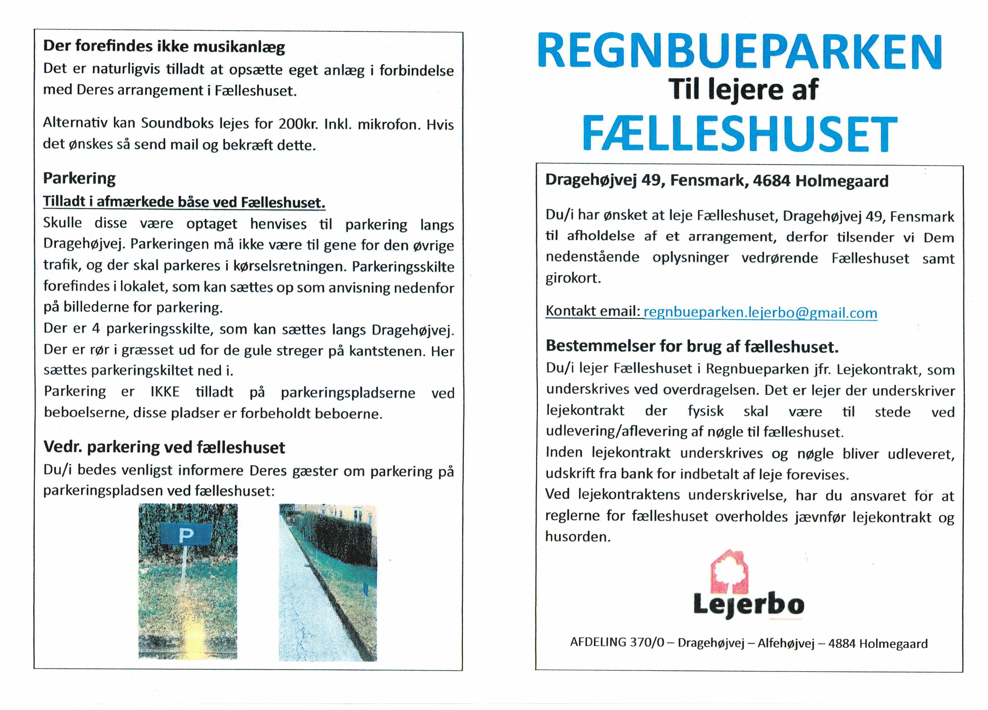 Fælleshus Udlejning Type Beskrivelse Udlejning (pdf) Info-brochure s. 1 (jpeg) Info-brochure s. 2. (jpeg) del Facebook LinkedIn Twitter Mail Print
